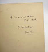 Édition originale illustrée de 30 lithographies de Maurice Denis, en noir et ocre pour la première partie, en noir et vert pour la seconde. Un des 300 exemplaires numérotés, seul tirage annoncé, celui-ci comporte un envoi autographe signé par l'auteur et l'artiste au peintre Jacques-Émile Blanche. Il s'agit du premier ouvrage illustré publié par Maurice Denis qu'il le fit à la demande de Gide. L'auteur et l'artiste était tous deux des proches de Jacques-Émile Blanche, le premier le rencontre en 1886 et le second en 1892. Ils entretinrent chacun une abondante correspondance avec le portraitiste et Denis participa à plusieurs expositions collective avec Blanche. Carteret, IV, 184; Yves Peyré, Peinture et poésie. Le Dialogue par le livre, 2001, p. 106 : " Ce livre est la trace la plus accentuée du symbolisme, la ratification par les Nabis du principe du livre de dialogue". * Membre du SLAM et de la LILA / ILAB Member. La librairie est ouverte du lundi au vendredi de 14h à 19h. Merci de nous prévenir avant de passer,certains de nos livres étant entreposés dans une réserve.