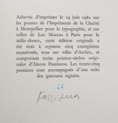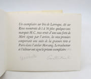 Édition originale illustrée de 6 lithographies en couleurs signées par l'artiste. Un des 20 exemplaires hors commerce tirés sur Arches et réservés aux collaborateurs. * Membre du SLAM et de la LILA / ILAB Member. La librairie est ouverte du lundi au vendredi de 14h à 19h. Merci de nous prévenir avant de passer,certains de nos livres étant entreposés dans une réserve.