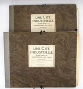 Rare édition originale de cet album composé de 162 (sur 164) planches, certaines en couleurs ou dépliantes. Elles représentent des plans et des vues des bâtiments de cette cité idéale créée par Tony Garnier prévue pour accueillir 35 000 habitants. Il en a l'idée pour la première fois dans les années 1890 et produit une première version en 1901 alors qu'il est en résidence à la Villa Médicis à Rome. Les plans en sont terminés autour de 1904. L'oeuvre est un véritable succès à sa publication, elle connaît des rééditions dans les années 1930 par Massin, une chez l'éditeur original dans les mêmes années, une en 1988 et une en 2019. Inspiré du roman d'Émile Zola Le Travail paru en 1901 comme du fouriérisme et inspiration pour l'architecture soviétique, cet ouvrage est l'un des premiers manifestes de l'urbanisme au XXe siècle. On joint deux planches représentant chacune un plan et une élévation d'après un dessin de l'architecte Perrève. * Membre du SLAM et de la LILA / ILAB Member. La librairie est ouverte du lundi au vendredi de 14h à 19h. Merci de nous prévenir avant de passer,certains de nos livres étant entreposés dans une réserve.
