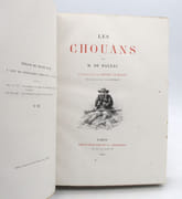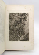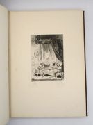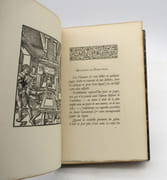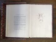 Édition illustrée des compositions en noir de Julien Le Blant gravées sur bois par Léveillé. Un des 35 exemplaires sur papier de Chine fort, second papier après 75 Japon impérial. Il est accompagné d'une suite de 8 gravures à l'eau-forte tirées sur Chine en 4 états : un état définitif en noir, un état définitif en bistre, un état intermédiaire avec remarques et un état avant la lettre avec remarques. Le premier volume comprend, relié in fine, le bulletin de souscription de la présente publication. Bel exemplaire dans une reliure signée de Champs. * Membre du SLAM et de la LILA / ILAB Member. La librairie est ouverte du lundi au vendredi de 14h à 19h. Merci de nous prévenir avant de passer,certains de nos livres étant entreposés dans une réserve.