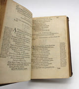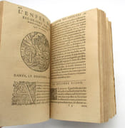 Belle édition, sans doute une contrefaçon l'édition aldine de 1502, ornée de 10 belles lettrines peintes en début de chaque livre. Elle pourrait être l'oeuvre de l'imprimeur Balthazar de Gabiano, spécialiste des contrefaçons aldines, la description de notre exemplaire est semblable en tout point à celle donnée par les bibliographies. Elle comprend les mêmes signatures et la préface de l'édition aldine y omise, ce qu'Alde mentionne dans son Monitum publié en mars 1503. Ce qui permet de dater le présent exemplaire de 1502 ou du tout début de 1503. Elle est imprimée sur une colonne en caractère italique (de type It6) qui fut commandé par Alde Manuce à Francesco Griffo et dont c'est l'une des premières occurrences en France. La Guerre civile, titre parfois traduit sous le terme de Pharsale en français (Pharsaliae en latin), est une oeuvre inachevée de Lucain et la seule qui nous soit parvenue. Elle devait à l'origine compter 12 livres mais Néron obligea Lucain à se suicider suite à sa participation de la conjuration de Pisone qui visait l'empereur. Le dernier livre reste inachevé et est publié de façon posthume, les livres XI et XII qu'il avait prévu ne sont jamais rédigés. Baudrier, VII, p.7-8; Isaac & Shaw, A Typographical Catalogue of books printed in France 15011520 in the British Library, n°8 [en ligne]. Ex-bibliotheca manuscrit Bernardi Maticonensis biffé. Belles couleurs bien fraîches des lettrines enluminées. * Membre du SLAM et de la LILA / ILAB Member. La librairie est ouverte du lundi au vendredi de 14h à 19h. Merci de nous prévenir avant de passer,certains de nos livres étant entreposés dans une réserve.
