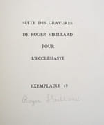 Édition illustrée de 14 burins hors textes et d'une vignette au titre de Roger Vieillard qui est également le traducteur de ce texte extrait de l'Ancien Testament. Un des 18 exemplaires sur Hollande van Gelder comprenant une suite sur Ingres et une gravure en premier état signée par l'artiste. Bel état intérieur. * Membre du SLAM et de la LILA / ILAB Member. La librairie est ouverte du lundi au vendredi de 14h à 19h. Merci de nous prévenir avant de passer,certains de nos livres étant entreposés dans une réserve.