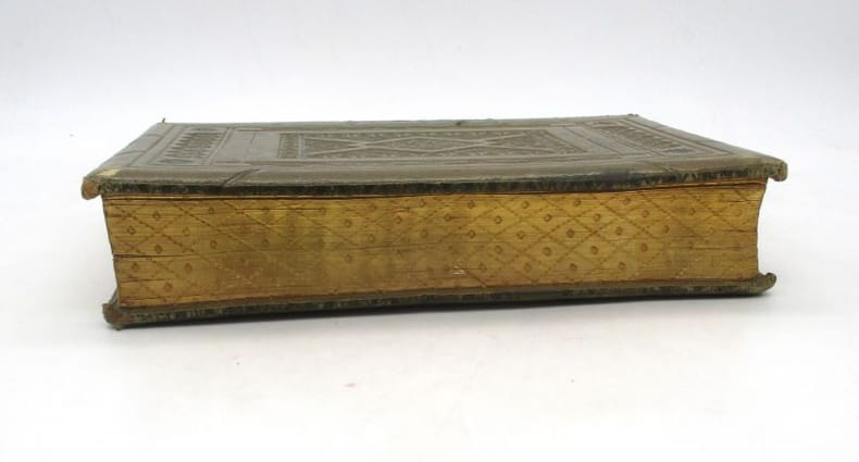 S.l., s.n., s.d. [Lyon, Balthazar de Gabbiano, 1502 ou 1503 ?]. In-16, [138] ff. sign. : a7 b8-n8 s3, basane mouchetée brune moderne, dos à nerfs orné de fleurons dorés, (titre et dernier f., sans doute blanc, manquants, pâle mouillure sans gravité à plusieurs ff., quelques rares taches et rousseurs).
