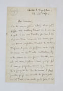 Lettre autographe signée à Aurélien Scholl, auteur et journaliste français qu'il remercie d'avoir décidé Valentin Simond de publier Curieuse dans l'Écho de Paris. Il s'agit du second roman de la saga Éthopée qui en comptera 21 au total. Elle a paru en feuilleton jusqu'à la publication d'un chapitre intitulé "L'adultère au Bon Marché". L'enseigne de grands magasins avait averti le journal de sa volonté de retirer ses publicités et donc lui faire perdre une part de son revenu. Il conclut sa missive en mentionnant Barbey d'Aurévilly dont il fut un proche. * Membre du SLAM et de la LILA / ILAB Member. La librairie est ouverte du lundi au vendredi de 14h à 19h. Merci de nous prévenir avant de passer,certains de nos livres étant entreposés dans une réserve.