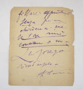 Poignante lettre autographe signée à destinataire non identifié auprès duquel il se lamente de la perte de Suzanne Berty, actrice et mère de ses deux enfants. Elle est décédée d'une tuberculose à Villette, le 6 mai 1902, moins de deux mois après s'y être mariée au célèbre romancier. * Membre du SLAM et de la LILA / ILAB Member. La librairie est ouverte du lundi au vendredi de 14h à 19h. Merci de nous prévenir avant de passer,certains de nos livres étant entreposés dans une réserve.