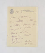 Lettre autographe signée à un auteur non identifié qu'il complimente et critique. Il lui conseille d'aller voir un tableau de David, Barra, conservé à Avignon. * Membre du SLAM et de la LILA / ILAB Member. La librairie est ouverte du lundi au vendredi de 14h à 19h. Merci de nous prévenir avant de passer,certains de nos livres étant entreposés dans une réserve.
