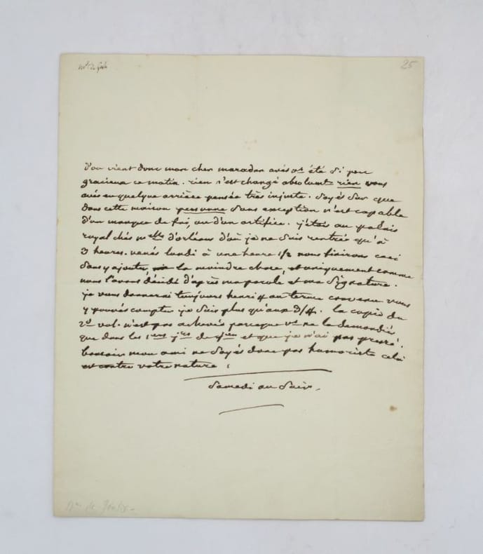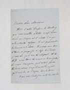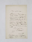 Lettre autographe à l'éditeur Charpentier lui priant de lui donner un exemplaire de Byron, peut-être de ses Oeuvres complètes parues chez Charpentier en 1836. * Membre du SLAM et de la LILA / ILAB Member. La librairie est ouverte du lundi au vendredi de 14h à 19h. Merci de nous prévenir avant de passer,certains de nos livres étant entreposés dans une réserve.
