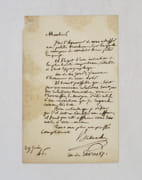 Lettre autographe signée à un destinataire non identifié qu'il entretient d'un monument en hommage à Montyon commandé par la ville de Mauriac. On joint le brouillon de la réponse à Marmontel et un portrait gravé de l'auteur. * Membre du SLAM et de la LILA / ILAB Member. La librairie est ouverte du lundi au vendredi de 14h à 19h. Merci de nous prévenir avant de passer,certains de nos livres étant entreposés dans une réserve.