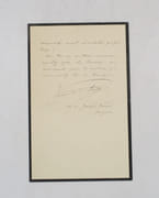 Carte autographe signée de ses initiales envoyant ses "Cordiales félicitations". * Membre du SLAM et de la LILA / ILAB Member. La librairie est ouverte du lundi au vendredi de 14h à 19h. Merci de nous prévenir avant de passer,certains de nos livres étant entreposés dans une réserve.