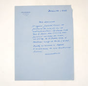 Lettre autographe signée à un correspondant non identifié qui lui a demandé des détails sur sa biographie. * Membre du SLAM et de la LILA / ILAB Member. La librairie est ouverte du lundi au vendredi de 14h à 19h. Merci de nous prévenir avant de passer,certains de nos livres étant entreposés dans une réserve.