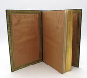 Cet album est composé de 45 feuillets comportant 27 triptyque gravés sur bois magistralement rehaussés de couleurs (dont un de l'artiste Kyosai) et 1 gravure sur bois, également rehaussée, sur 5 feuillets, le tout disposé au recto comme au verso. Les gravures sont l'oeuvre du graveur Chikonabu, un artiste majeur du ukiyo-e qui exerce durant l'ère Meiji. Par sa naissance, il est inféodé au clan Sakakiabra, vassaux des shoguns Tokugawa. À ce titre, il a participé à la guerre de Boshin aux côtés de ses maîtres. Cet album représente des scènes de la vie de la dynastie Tokugawa (shoguns de 1603 à 1868): cérémonies religieuses,divertissements ou encore batailles, qui ont été gravées et mise en vente entre 1879 (12e année de l'ère Meiji) et 1896 (29e année de l'ère Meiji). Elles sont toutes imprégnées d'une certaine nostalgie face à la rapide modernisation du Japon en cette fin du XIXe siècle, typique du style de Chikonabu des années 1880-1890. Il est notamment connu pour ses triptyques, ces polyptyques étant très rare et il a beaucoup représenté des femmes, des acteurs de théâtre et des scènes historiques. Cet album a été acquis par un français qui a encollé de nombreuses notes explicatives des scènes sur les contreplats de la reliure. Verso : 1- deux dieux de la Fortune assis : Ebisu et Daikoku, auquel des souris apportent de l'argent (gravée par Kyosai en 1889 et intitulée The Mugnificent Mice ou Les Souris prodigues).2- 300e festival du temple de Toshogu à Tokyo. 3- 1 gravure sur 5 ff. représentant la bataille de la 1ère année de Meiji [1868] entre danciens vassaux révoltés et les forces gouvernementales (Guerre de Boshin) 4- visite du 14e Shogun (Iemochi Tokugawa) au temple de Nikko5- 4e Shogun (Iemochi Tokugawa) regardant larmée longer la mer.6- arrivée des vaisseaux américains 7- Shogun passant le pont de bateaux à Matendo 8- procession du Shogun entrant dans un palais9- représentation d'un nô devant un public éduqué et le peuple10- daimyo transporté avec sa suite dans Edo11- procession à Funabashi12- scène de chasse au sanglierRecto : 1- revue militaire au château de Fukiage2- visite au temple Nikko3- visite aux sanctuaires de Kamo4- passage d'un noble et de sa suite sur le pont de bateaux de Kurihashi5- arrivée des nobles pour la fête de la nouvelle année lunaire6- traversée d'une rivière par une suite de noble en route pour Kawagoe7- dames fuyant un feu8- cérémonie d'intronisation du 8e shogun9- cérémonie sportive ou jeu [?]10- défilé militaire à Kyoto11- Shogun en jugement12- cérémonie religieuse au temple Toshogu d'Ueno (Tokyo)13- nobles traversant un pont14- arrivée du vieux vassal du shogun Hikozaimon Okubo (ou Okubo Tadataka), transporté par ses hommes15- procession pour le festival pour le 300e anniversaire de l'entrée du 1er shogun Tokugawa dans EdoRare. Couleurs d'une très grande fraîcheur. Voir photographie(s) / See picture(s) * Membre du SLAM et de la LILA / ILAB Member. La librairie est ouverte du lundi au vendredi de 14h à 19h. Merci de nous prévenir avant de passer,certains de nos livres étant entreposés dans une réserve.