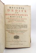 Nouvelle édition très augmentée de ce recueil de textes juridiques, fixant les procédures judiciaires, la propriété, le commerce ou encore la religion, produits par les Rois de France allant de Philippe VI à Louis XV. Deux ex-libris manuscrits dont un au titre. * Membre du SLAM et de la LILA / ILAB Member. La librairie est ouverte du lundi au vendredi de 14h à 19h. Merci de nous prévenir avant de passer,certains de nos livres étant entreposés dans une réserve.