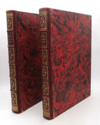 Édition illustrée des compositions en noir de Julien Le Blant gravées sur bois par Léveillé. Un des 35 exemplaires sur papier de Chine fort, second papier après 75 Japon impérial. Il est accompagné d'une suite de 8 gravures à l'eau-forte tirées sur Chine en 4 états : un état définitif en noir, un état définitif en bistre, un état intermédiaire avec remarques et un état avant la lettre avec remarques. Le premier volume comprend, relié in fine, le bulletin de souscription de la présente publication. Bel exemplaire dans une reliure signée de Champs. * Membre du SLAM et de la LILA / ILAB Member. La librairie est ouverte du lundi au vendredi de 14h à 19h. Merci de nous prévenir avant de passer,certains de nos livres étant entreposés dans une réserve.
