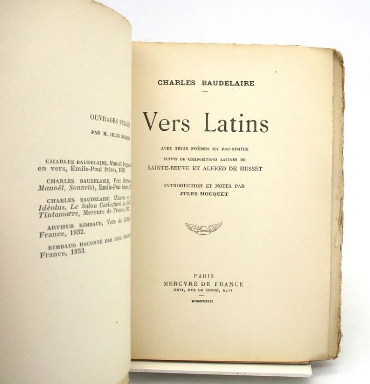 Édition comprenant trois poèmes en fac-similé suivis de compositions latines de Sainte-Beuve et Alfred de Musset. Un des 66 exemplaires sur pur fil Lafuma, seul papier mis dans le commerce. * Membre du SLAM et de la LILA / ILAB Member. La librairie est ouverte du lundi au vendredi de 14h à 19h. Merci de nous prévenir avant de passer,certains de nos livres étant entreposés dans une réserve.