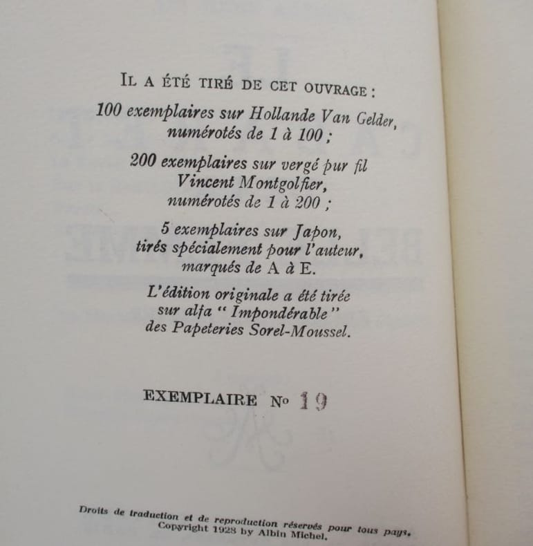 Édition originale de ce roman. Un des 208 exemplaires sur papier Hollande Pannekôck, deuxième papier après 18 sur Japon impérial. Exemplaire non coupé et à toutes marges. * Membre du SLAM et de la LILA / ILAB Member. La librairie est ouverte du lundi au vendredi de 14h à 19h. Merci de nous prévenir avant de passer,certains de nos livres étant entreposés dans une réserve.