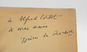 Edition originale, UN DES 200 exemplaires de tête sur vélin blanc, ici UN DES 20 hors-commerce (n° V). Bel ENVOI autographe signé de Dutourd à Emile Henriot en forme de poème : "L'amitié d'Emile Henriot / - Je crains encore une méprise - / Bouquin tu n'es pas idiot / Si vraiment tu me l'as conquise". Bel exemplaire. * Voir photographie(s) / See picture(s). * Membre du SLAM et de la LILA / ILAB Member. La librairie est ouverte du lundi au vendredi de 14h à 19h. Merci de nous prévenir avant de passer,certains de nos livres étant entreposés dans une réserve.
