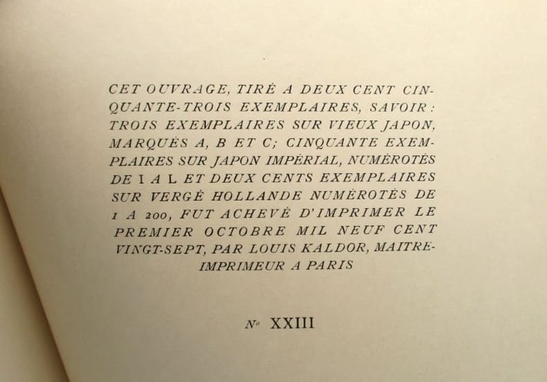 Édition originale. Un des 90 exemplaires sur Japon blanc Shiohara, seul tirage annoncé. * Membre du SLAM et de la LILA / ILAB Member. La librairie est ouverte du lundi au vendredi de 14h à 19h. Merci de nous prévenir avant de passer,certains de nos livres étant entreposés dans une réserve.