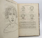 Nouvelle édition de la traduction française du Physiognomiae & Chiromantiae Compendium de Bartolomeo Della Rocca (parfois nommé Bartolomeo Cocle) qui a originalement paru à Strasbourg en 1533, de façon posthume. La première partie de l'ouvrage, intitulée "La Physiognomie naturelle" est illustrée de 15 gravures sur bois de visages, dont une partie est un remploi de celles utilisées dans la Chiromantia de Johannes de Indagine, publié par Pierre II Regnault en 1543. La seconde, "Théorique de la Chiromancie", (attribuée dans le titre à André Corue ou Corbeau), est illustrée de représentations de mains et de leurs lignes, également gravées sur bois. Ce résumé de l'ouvrage de Bartolomeo Della Rocca est largement inspiré de La Physionomia d'Aristote dont il suit le texte. Le livre connait dès sa première publication un certain succès qui engendrera un grand nombre de rééditions, de traductions et d'abrégés, comme le présent ouvrage, dans toute l'Europe. Malgré cette diffusion, le livre est mis à l'Index par l'Église en 1554 et dans une bulle du pape Sixte V en 1590, ce qui n'empêchera pas de nouvelles éditions jusqu'au XVIIe siècle. Sur le dernier feuillet blanc de cet exemplaire, une main inconnue a rédigé deux petites maximes : "Celui qui dit vrai ne doit rien craindre de la Calomnie" (répétée deux fois) et "Je suis en vérité la voie [?] de la raison et cependant j'en ai la folie [?]". Inconnu de Caillet; Raffaella Zaccaria, Dizionario Biografico degli Italiani, vol. 37, 1989, article "Della Roca, Bartolomeo". Voir photographie(s) / See picture(s) * Membre du SLAM et de la LILA / ILAB Member. La librairie est ouverte du lundi au vendredi de 14h à 19h. Merci de nous prévenir avant de passer,certains de nos livres étant entreposés dans une réserve.
