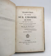 Édition collective réunissant plusieurs de textes philosophiques, ornée d'un portrait en frontispice de Blaise Pascal gravé par Hopwood. Ex-libris héraldique des Harcourt, de la bibliothèque du château de St Eusoge, propriété de la famille. Belle reliure romantique de Simier., * Membre du SLAM et de la LILA / ILAB Member. La librairie est ouverte du lundi au vendredi de 14h à 19h. Merci de nous prévenir avant de passer,certains de nos livres étant entreposés dans une réserve.
